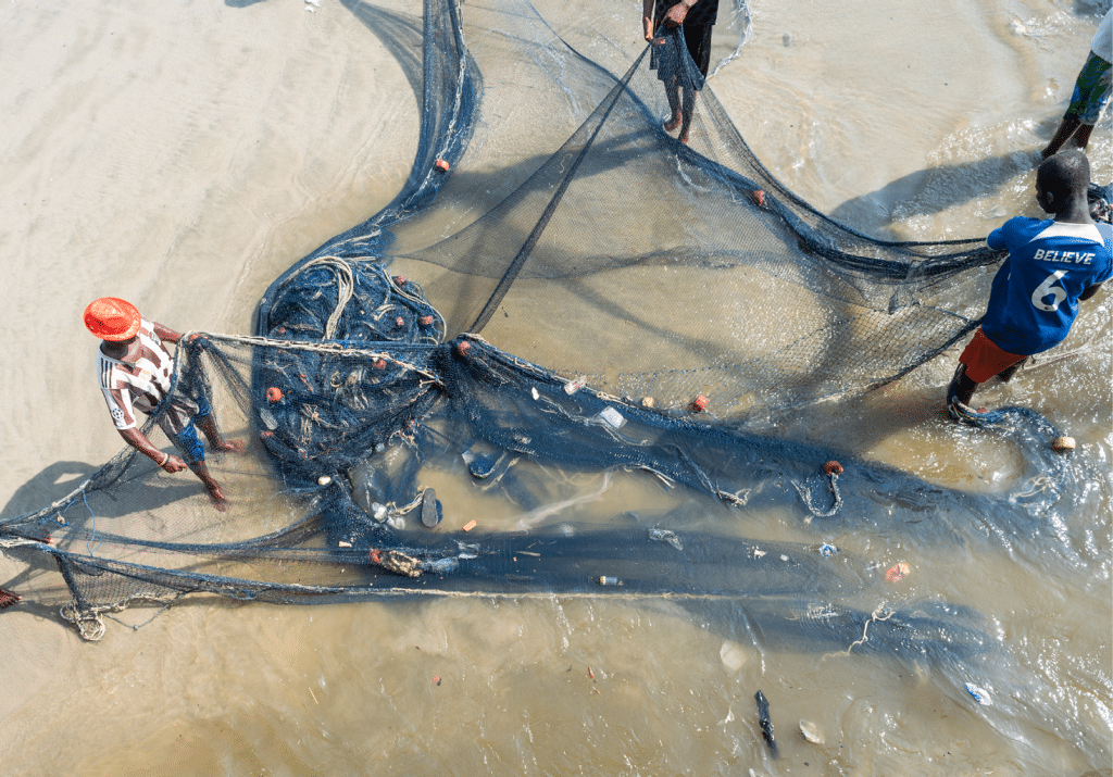 Title of the photograph: BELIEVE. Fishermen in a village in Ghana collect their nets full of plastic…