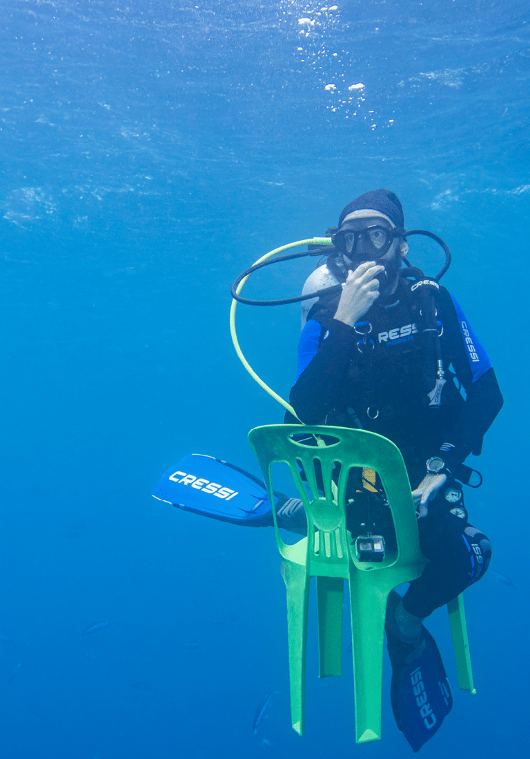 Title of the photograph: The chair for thinking about what we throw into the sea